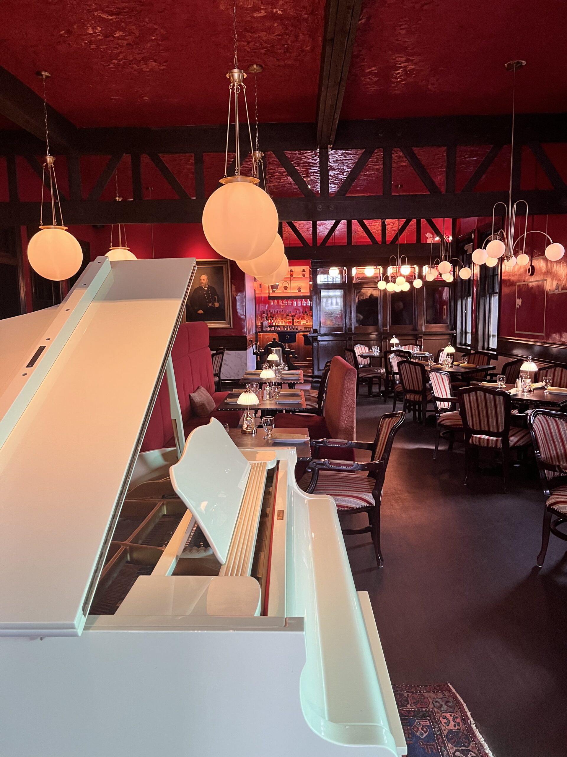 Our dining room, inspired by the elegance of a 1920s train station, remains one of Winnipeg’s most iconic spaces. Rich wood accents, grand chandeliers, and a cozy railcar lounge evoke the romance of vintage travel. During our April 2024 renovations, we added a stunning white baby grand piano — now the centerpiece of our Friday evening piano nights, where live music creates the perfect ambiance for date night or a special gathering.